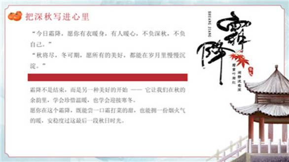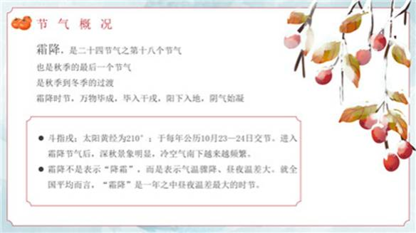 霜降时节,万物毕成,毕入干戌,阳下入地,阴气始凝。