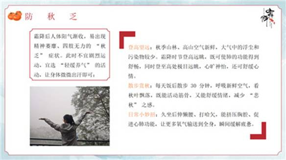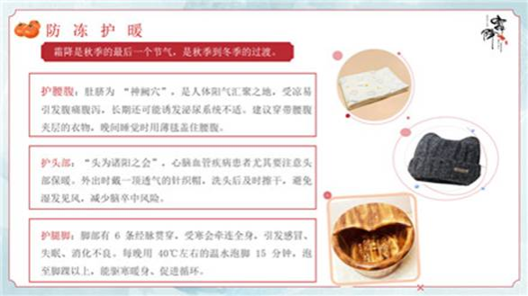 2025年10月27日,学校关工网站“理论园地”栏目“校园文化”系列刊发学校原副校长、关工委常务副主任(代)潘华峰教授指导科研管理创新团队研究生彭玉撰写的文章,题目是《霜降进补宜平补,健脾养胃保健康》。
