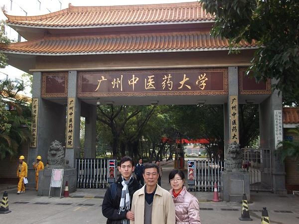 丘杰礼(中)和学生李文龙(左)、陶莲(右)谈话后合影