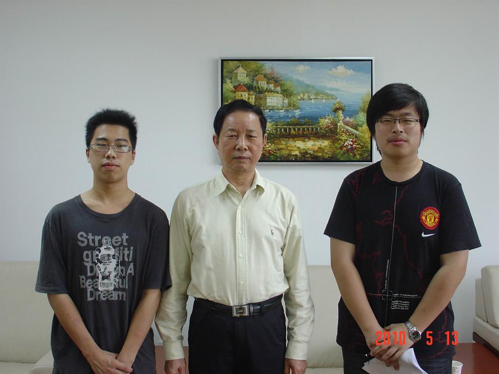 黄朝阳书记(中)与学生记者王炜(右)、庄植轩(左)合影