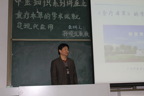 日晚上在三元里校区为第三临床医学院学生开办中医知识讲座,主题是《食疗本草的学术成就及现代运用》。