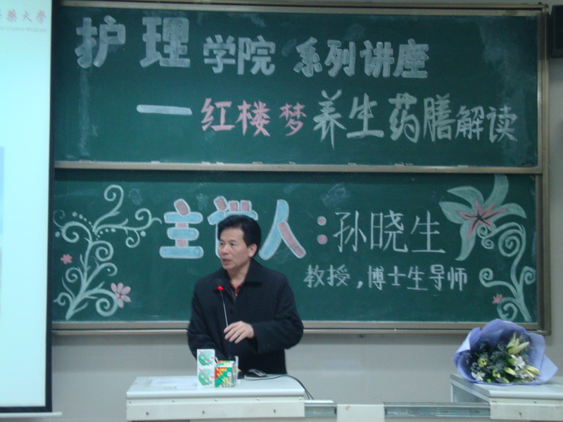 护理学院关工分委2011年3月24日报道:3月17日晚上,大学城校区综合楼202教室气氛热烈,学校党委副书记、关工委副主任、中医养生学博士研究生导师孙晓生教授,应邀为护理学院师生对中国四大古典名著之一《红楼梦》中的药膳方进行了别开生面的解读。