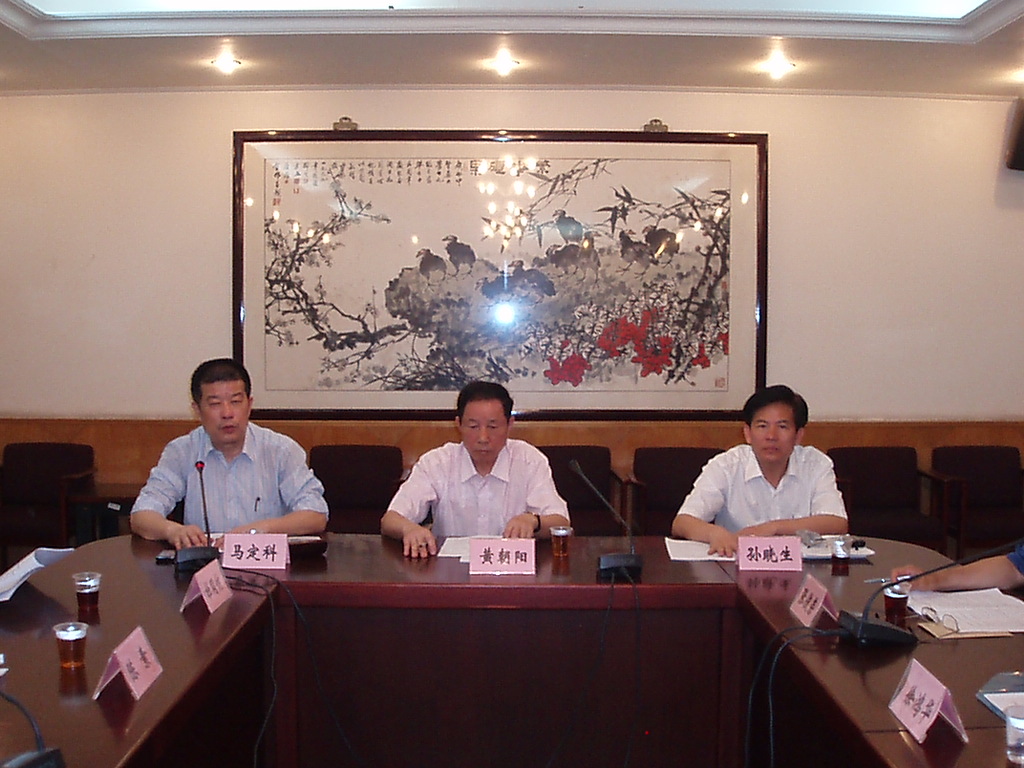 黄朝阳(中)主持会议,孙晓生(右)出席并讲话(张志英摄影)