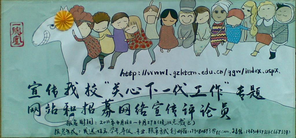 该院学生会宣传部采取的宣传方式有三种:一是手绘海报,贴于大学城校区第一食堂对面宣传展板上。二是撰写《宣传我校关工网站和招募该网站宣评员》文稿,把其电子版发往各班群邮箱。三是打印《宣传我校关工网站和招募该网站宣评员》文稿纸质版粘贴于各班宣传栏。宣传活动不但在一院学生中产生强烈影响,其他学院学生也很关注。自愿报名担任学校“关心下一代工作”网站宣传与评论员(简称网站宣评员)的除了一院学生外,还有中药学院的学生。