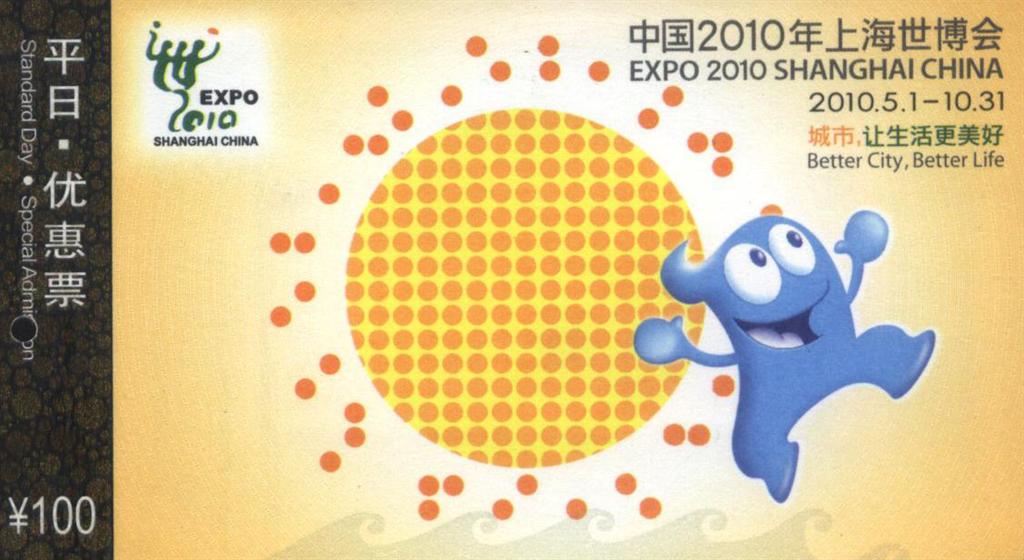 发稿前,我们收到陈武光教授发来的“上海世博会门票”扫描图片(见下图),并附上富有时代激情、科学内涵、文艺色彩的说明:“太阳、月亮,星星,日月同辉,星斗满天,吉祥一家。红色、紫色、绿色、黄色、蓝色,五彩缤纷,未来生活更精彩。普普通通的点、圆等抽象元素,勾画信息社会、数码时代,尽显风骚。世博会会徽迎风飘扬,吉祥物海宝尽情欢歌,跃出画面,张开双臂,拥抱世界。”