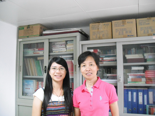 卢学布书记(右)与学生记者之一何韵妍(左)合影