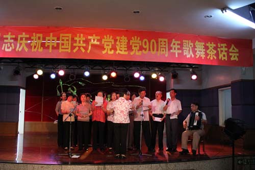 学校关工委办公室2011年6月30日报道:6月29日上午,学校离退休工作处、直属离休党支部和退休党总支在三元里校区健康活动中心召开“永远跟党走”离退休老同志庆祝中国共产党成立90周年歌舞茶话会。