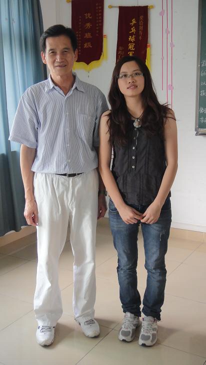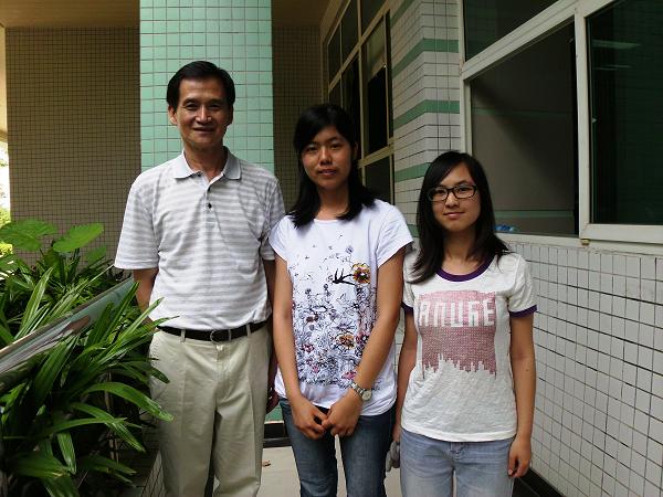 李政木教授(左)与学生记者胡霭玲(右一)、龚翠莹(右二)合影
