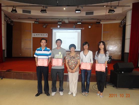 黄仰模(左三)颁奖后与学校关工网站投稿刊稿先进学生二等奖获得者合影