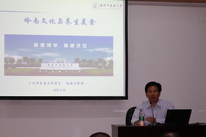 学校关工委办公室2011年11月25日报道:11月24日(星期四)上午,我校党委副书记、关工委副主任、中医养生学专业博士研究生导师孙晓生教授作了题为《岭南文化与养生美食》的中医养生保健讲座。