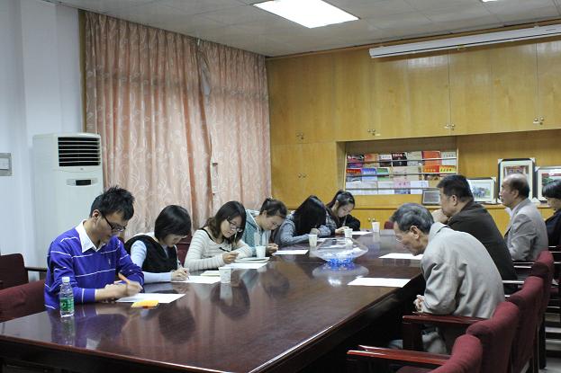 在三元里校区办公楼三楼接待室,4位特邀党建组织员和6位党员发展对象首先进行座谈;6位同学还接受了谈话前思想政治状况的问卷调查。然后,特邀党建组织员分组或一对一与党员发展对象进行个别谈话。