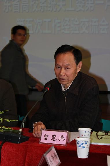 曾惠典在会议总结时,首先感谢省高校系统(教育厅)关工委两位主要领导对这次会议的支持、对这一片院校的鼓励和在会上的重要指示,感谢深大对这次会议的高度重视、精心组织、出色服务。接着列举了各校关工委在会议交流中呈现的亮点,其中讲到我校的关工网站,认为与同济大学关心下一代网站相比,我校是后来居上。对于2012年的工作,他提出几点意见:一是加强学习,提高认识,增强责任感、使命感。他引用了一位领导同志的话说,有识才有情,有情才有为,有为才有位,有位更有为。二是突出重点,尽力而为,认真抓好特邀党建组织员、青蓝工程工作,并把特邀党建组织员工作与青马工程结合起来(青马工程指青年马列主义者培养工程)。三是立足基层,完善组织,切实加强自身建设。