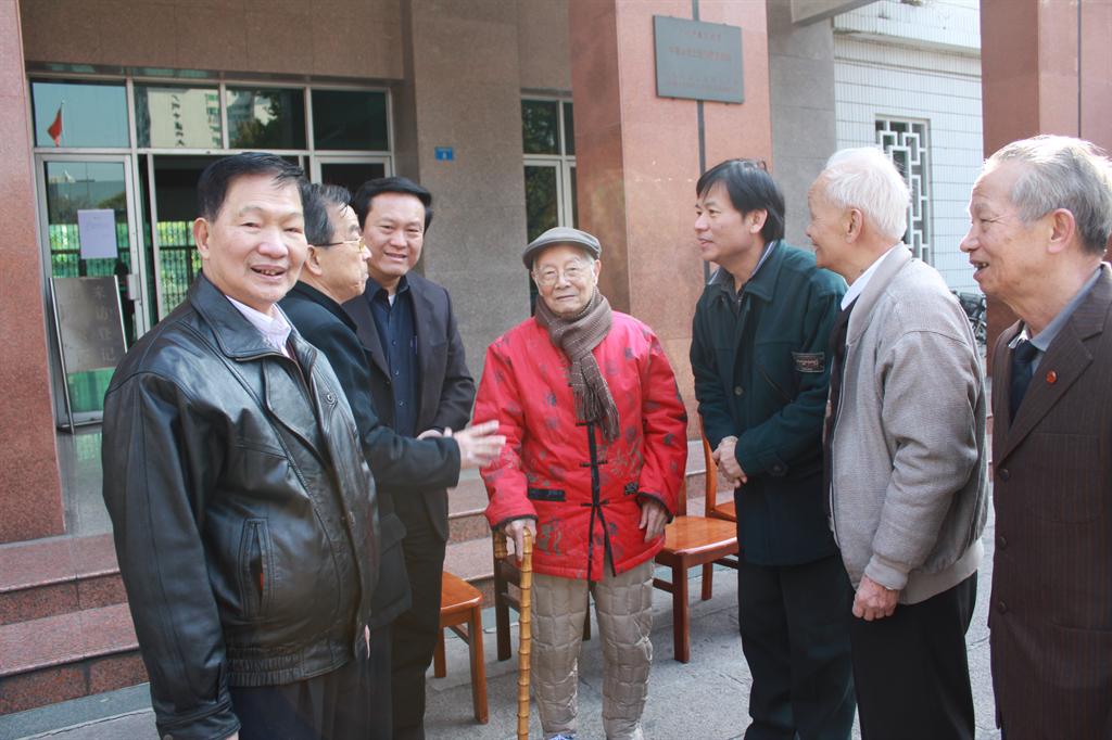 国医大师邓铁涛教授欣然与大家合影并亲切交谈;学校党委书记黄斌发表热情洋溢的讲话。党委副书记孙晓生、关工委常务副主任马定科、组织部部长陈文锋、离退休工作处处长张新仲等应邀出席。