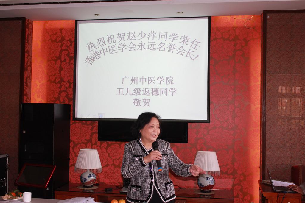 学校关工办2011年12月28日报道:12月25日上午,我校五九级校友40多人在彭达大酒店彭达厅聚会,祝贺该级校友赵少萍荣任香港中医学会永远名誉会长。