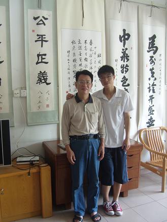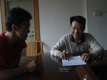 钟镜金教授(右)与学生记者刁宇鵬(左)