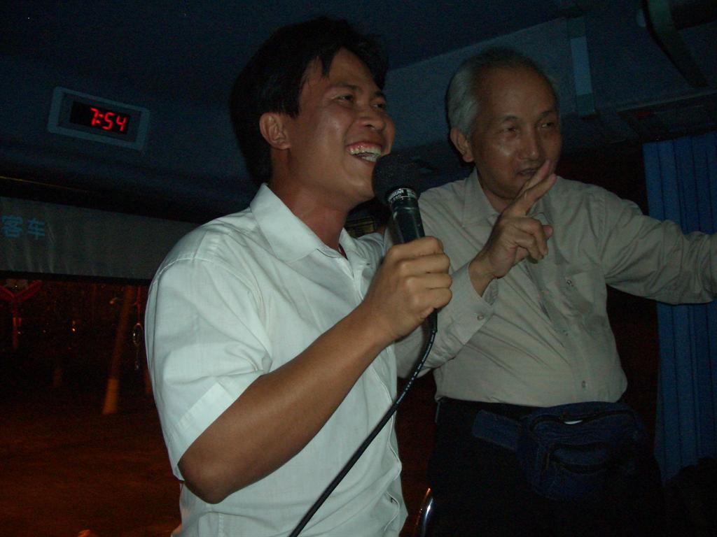 《喜迎新春祝君长寿》作者陈武光教授(右)