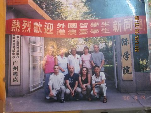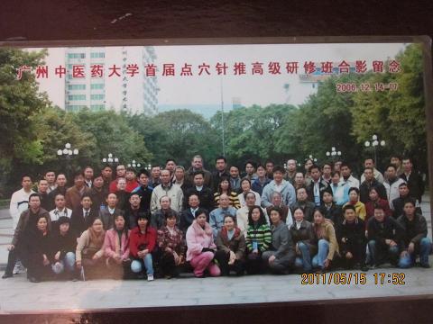 学生记者翻拍历史照片之一:广中医首届点穴针推高级研修班合影(第二排右六为林超雄老师)
