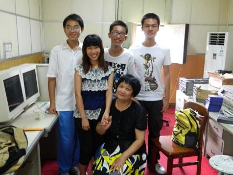 陈素院长(前)与学生记者(后自左至右)张祥全、欧韦研、孙斌、李冬冬合影