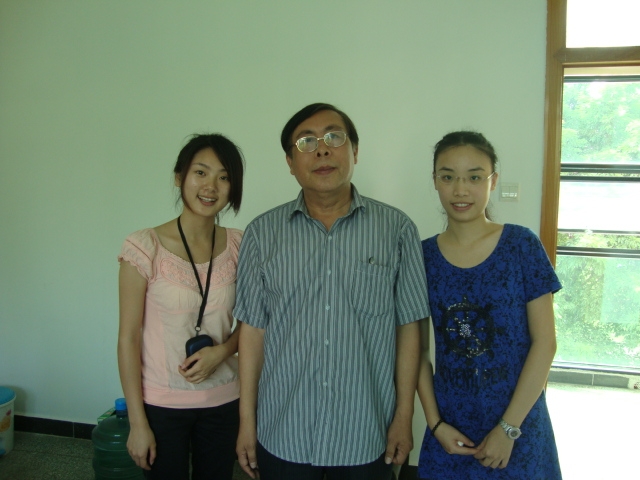 钟廷机副教授(中)与学生记者陈茵之(左)、邹晓琦(右)合影