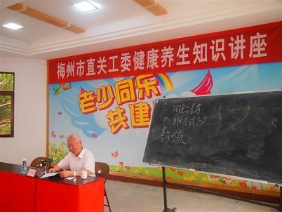 该讲座是梅州市直关工委和滴水瑜伽会所联合举办的,主题是“善养生、登寿城”,在梅州市直关工委多功能活动大厅举行。