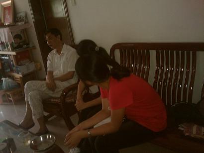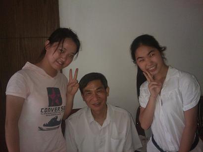 谢桂权教授(中)与学生记者梁添丽(左)、柯敏燕(右)合影