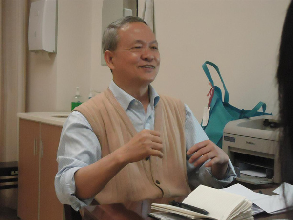 吴运泉老师与学生记者相谈甚欢
