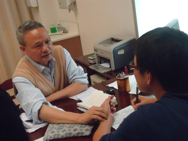 吴运泉老师为学生记者示范脉诊