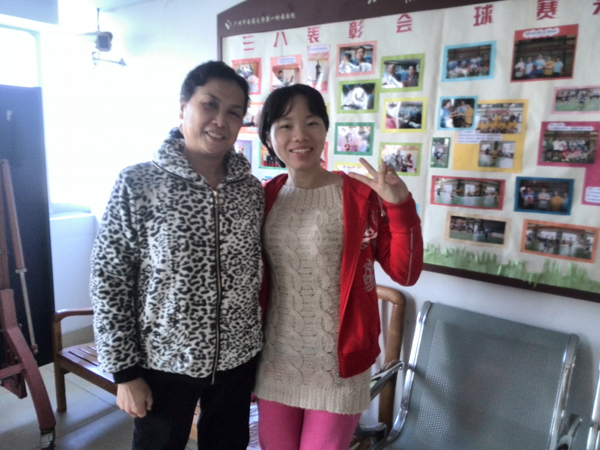 汤雪英老师(左)与张春燕同学(苏佳虹同学入党介绍人)