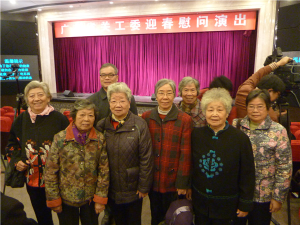 我校关工委委派(从左至右)李文、纪奇惠、林良基、赵荣兰、詹剑虹、刘素莲、杨应华、郑佩娟等老同志前往观看(以上照片均为谭倩雅拍摄)