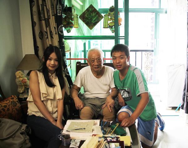 图1.马陈深教授(中)与学生记者邓楚华(左)、陈俊言(右)合影