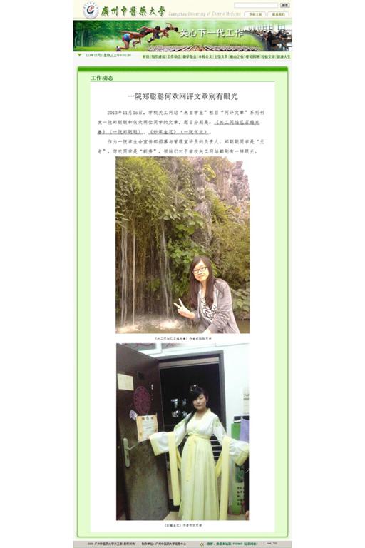 日,学校关工网站“来自学生”栏目“信息反馈”系列刊发一院学生会宣传部管理的宣评员林诗蓉同学