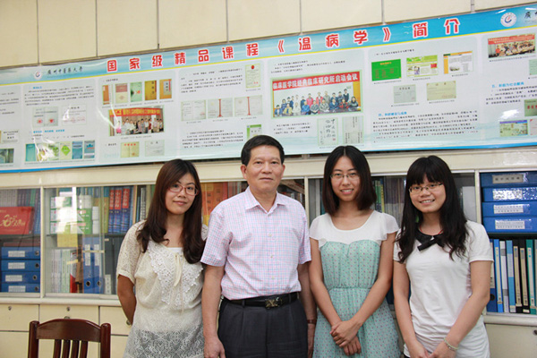 图4.林培政教授(左二)与学生记者(自左至右)卢晓露、谢巧芳、王冰冰合影