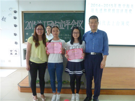 会议在对成绩突出宣评员和刊稿先进集体和学生颁奖之后,一院汪益艳同学代表获奖宣评员作题为
