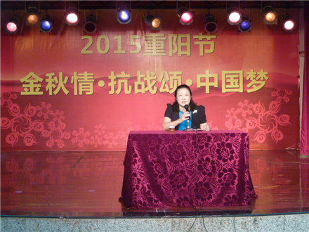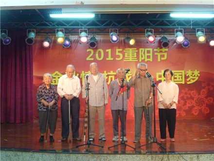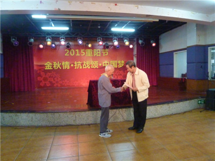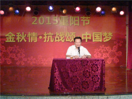 由学校离退休工作处主办的今年老年节庆祝活动主题是“金秋情·抗战颂·中国梦”,气氛十分热烈。学校党委书记黄斌出席并讲话向老同志祝贺节日,还给抗战老同志代表杨复敬戴红花;副校长潘华峰主持文艺演出前的大会。参加活动的在职部门领导有:党委办公室主任李强、离退休工作处处长陈霖、正处级干部张新仲、副处长刘晓红等;原党委书记、关工委主任黄朝阳,原党委书记、老人协会会长王绵宁,原副校长丘和明等也参加活动。