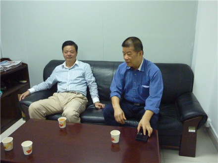 马定科(右)与赖小平交谈