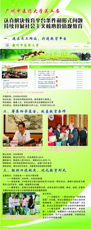 《广州中医药大学关工委:认真解决教育平台条件和形式问题持续开展社会主义核心价值观教育》展板