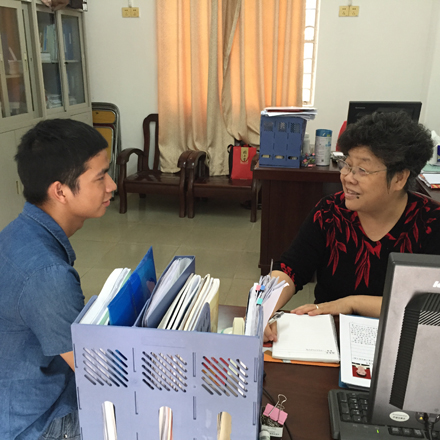 二院关工分委(余欢平)2015年5月7日报道:2015年4月30日,受第二临床医学院教学党总支委托,学校党委聘任的特邀党建组织员,该院关工分委常务副主任曹荣英、委员陈叶卫平分别与2012级本科学生蔡权林、游燕良、温君茹、苏美怡、张荷、傅妙玲等6名发展对象进行了入党前谈话。