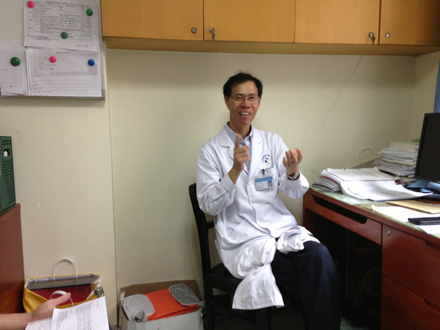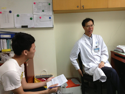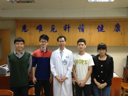 庄礼兴教授(中)与学生记者(从左到右)吴嘉荣、刘泽校、徐生钊、蔡如妆合影