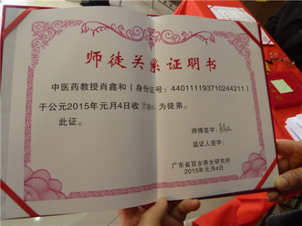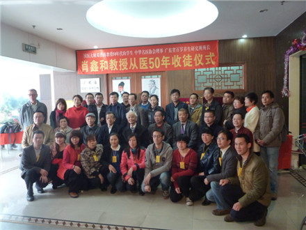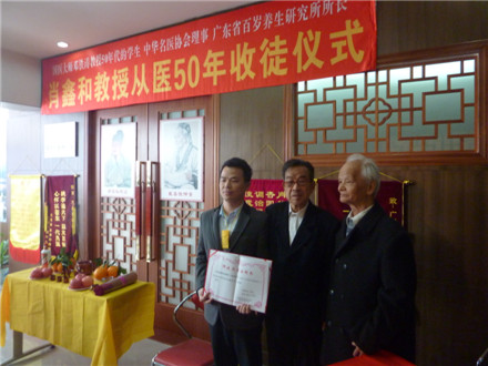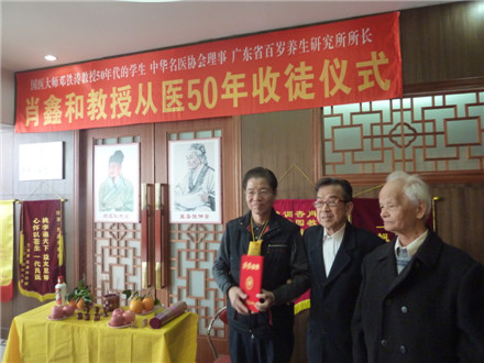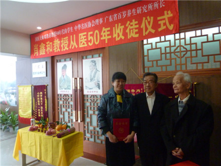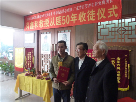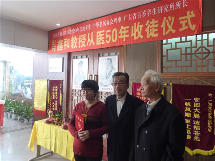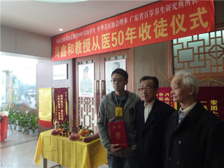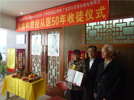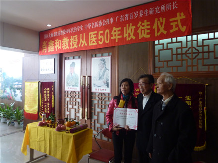 学校关工办2015年1月6日报道:1月4日上午,广东省百岁养生研究所举行了肖鑫和教授从医50年收徒仪式。