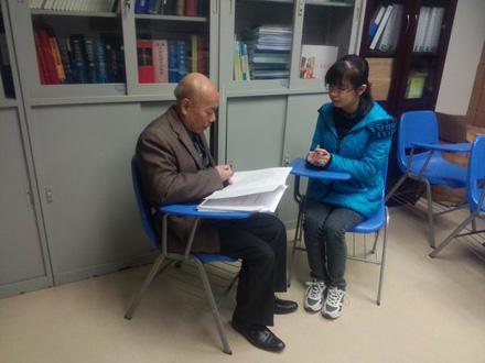 黄仰模教授(左)与刘晓芳同学谈话