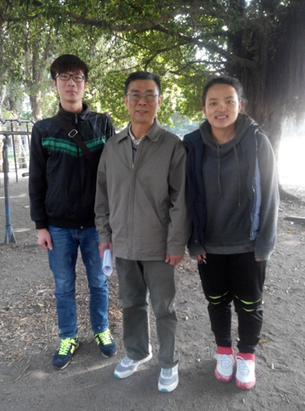 丘杰礼(中)与刘伟健(左)、王东梅(右)合影