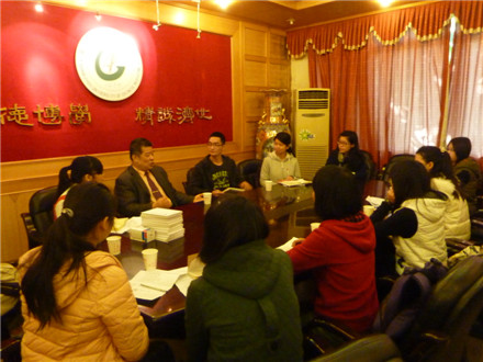 一院关工分委(陈伟健、何静璇)2014年12月23日报道:12月13日上午,学校关工委常务副主任、学校党委特邀党建组织员马定科研究员在三元里校区办公楼楼322接待室,接受一院2013本科中医党支部11名党员的访问,与大家畅谈理想。