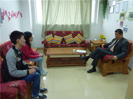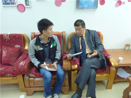 在简短的集中介绍、座谈、合影之后,马定科和张湘两位老师分别与王建国和于也、黄磊和张智慧等4位同学进行谈话。详情请参阅已经刊发在学校关工网站“来自学生”栏目“成长历程”系列、由于也同学撰写的《青春不改,岁月如歌》。