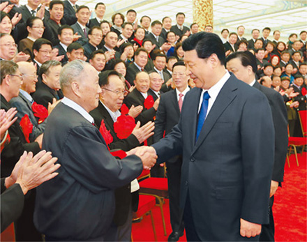 党和国家领导人习近平、刘云山、张高丽等在北京人民大会堂回见全国离退休干部先进集体和先进个人代表。