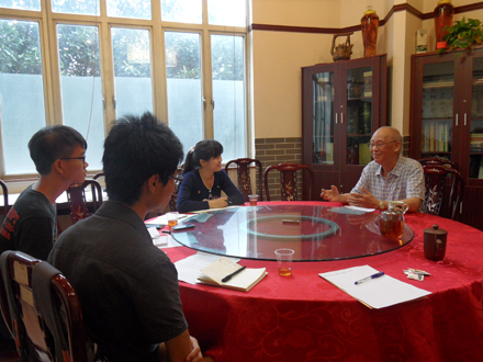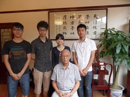 罗永佳老师(前)与学生记者(后从左至右)谢建威、郝世超、邹晓婷、胡伟雄合影
