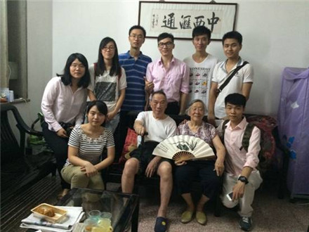 最后,同学们拜访了著名中西医结合专家欧明教授。欧老向同学们介绍了中西医结合的优势之处,随后偕夫人在家中客厅“中西汇通”牌匾下与同学们合影。