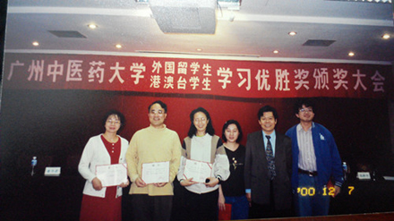 张新仲老师提供的历史照片之二:国际学院的颁奖大会(右二为张新仲老师)