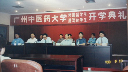 张新仲老师提供的历史照片之一:国际学院的开学典礼(右一为张新仲老师)