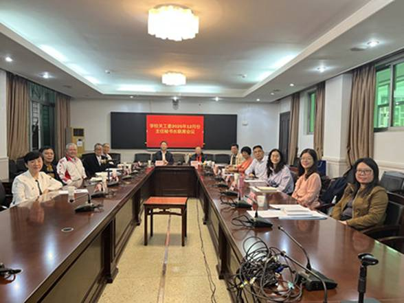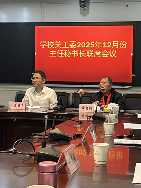 学校关工办2025年12月5日报道:学校关工委主任黄朝阳在三元里校区办公楼二楼会议室主持召开了2025年12月份主任秘书长联席会议。学校副校长史亚飞,关工委副主任张俊荣、陈素、张新仲、肖鑫和、吴运泉,副主任兼秘书长潘伟军,副秘书长范琳燕、王烁,办公室秘书谭倩雅、学校原保卫处副处长李宗明、原财务处何慧明老师等参加会议。