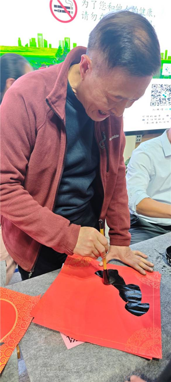 图9.谢建新教授为群众写福字